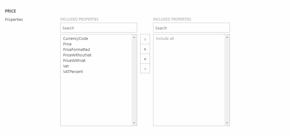 You can also specify explicitly which product properties to make available for the product catalog. While this has no impact on performance – a property is only “paid for” when it is used, not when it is included – it makes it possible to write dynamic templates which are rendered differently depending on the information available.