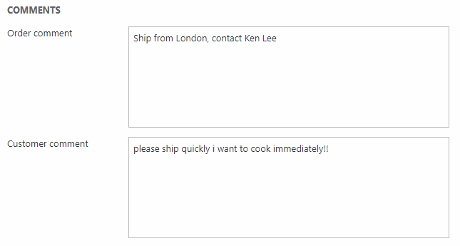 The Comments box (Figure 6.1) lets you view and edit both the order comments and any customer comments.