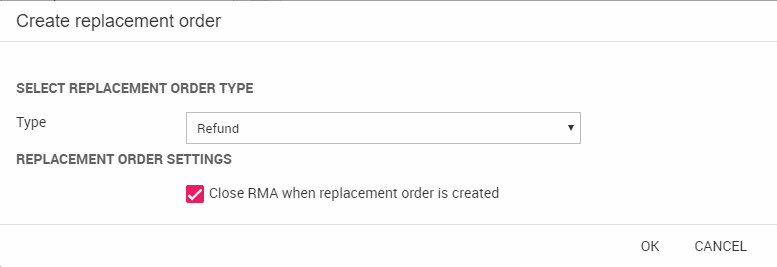 For all types of replacement orders, you can check the close RMA when replacement order is created checkbox if it fits your RMA flow.