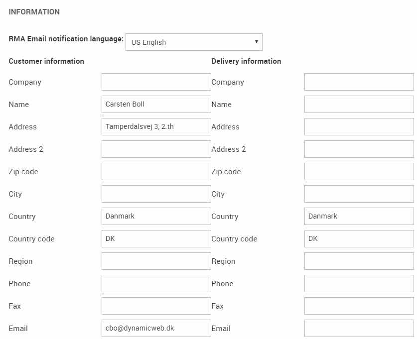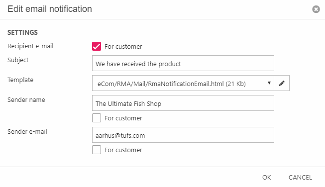 When working with RMAs, it can be useful to inform customers and employees alike when an RMA is created or closed, or when it enters a new state. Happily, the Dynamicweb RMA management system comes with a built-in engine for handling email notifications to customers and employees.