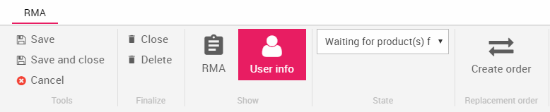 Click the user info button (Figure 6.1) in the toolbar to view and edit the extended information about the user who created the RMA.