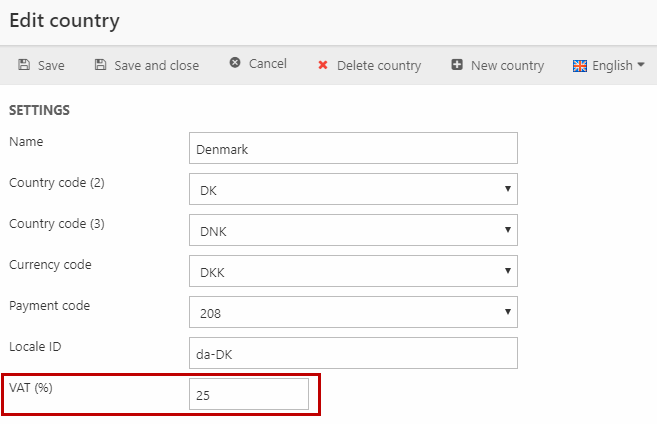 - As a fallback value – It is applied to all products unless a more specific VAT rate is defined, e.g. a Country VAT rate