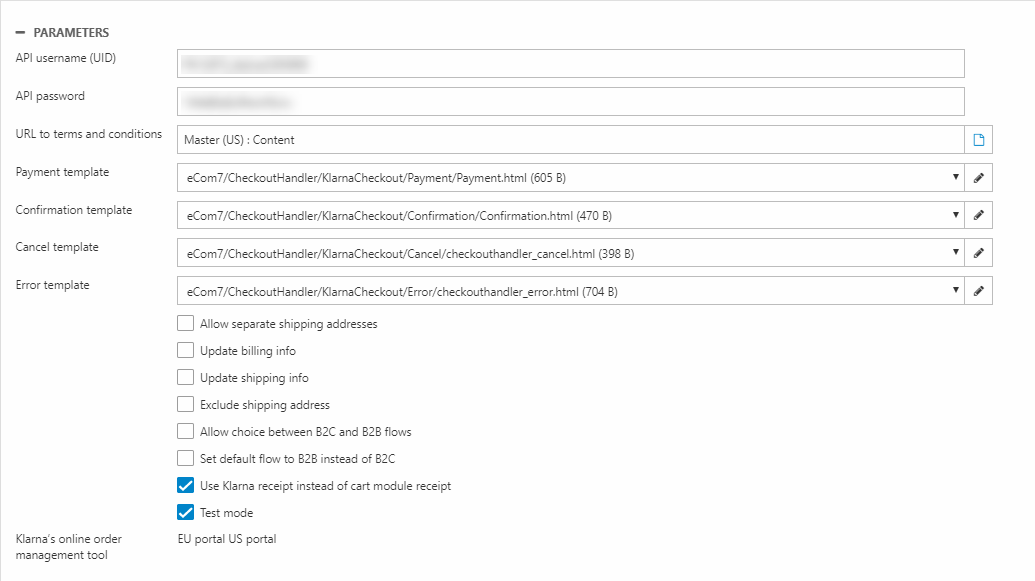 To set up a Klarna Checkout v3 payment method you need an API username (UID) and an API password – if you don’t have these apply for a test account.