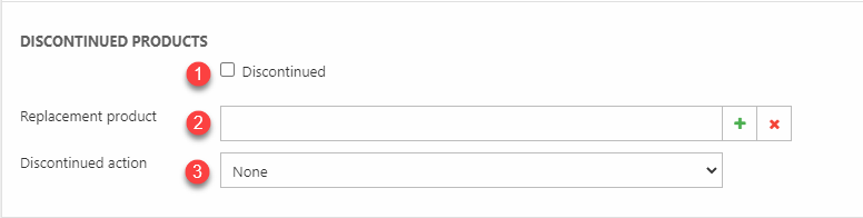 The Discontinued products section (Figure 4.1) makes it possible to mark a product as discontinued and configure related behaviors.