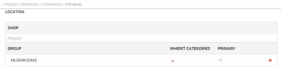 The Location button opens an overview of the relationship between this group and other groups and shops (Figure 8.1).
