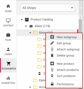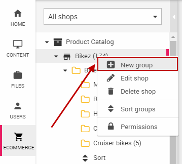 Product groups act as containers for products – they are created under a shop (Figure 1.1), and are used to organize products in any way you’d like – in groups, subgroups, sub-subgroups, etc.