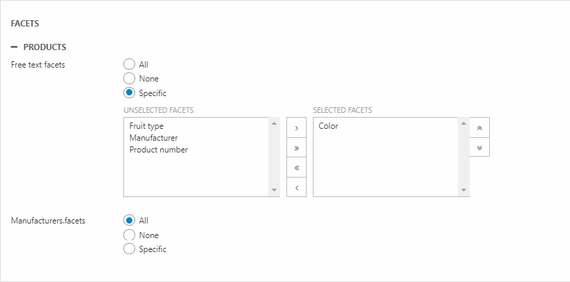 You can also fine-tune which facets should be active when showing this product group in frontend (Figure 4.3).