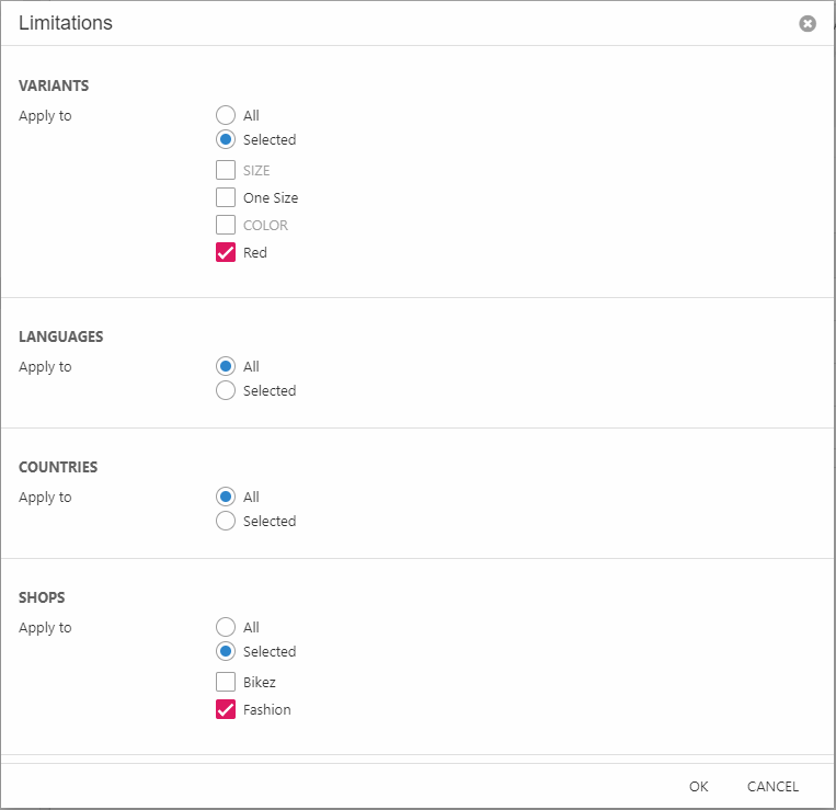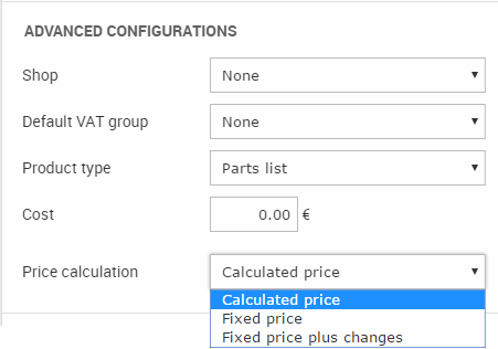 - Fixed price plus changes combines the regular Price field with the individual prices of all included products
