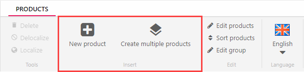 You can add products directly in Dynamicweb from any product list using the ribbon bar buttons New product and Create multiple products (Figure 2.1).