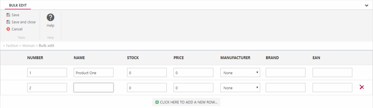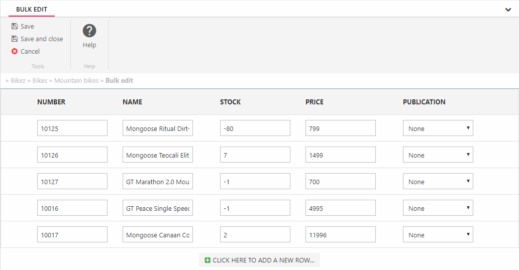 You can also edit multiple products – select them in the product list and click Edit products to open grid containing the selected product list columns (Figure 4.2).