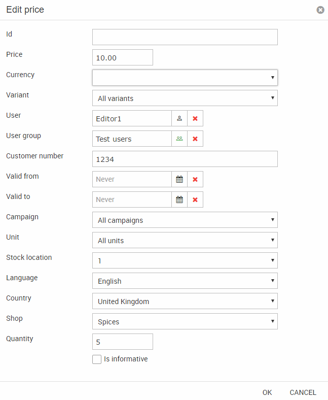 The price calculation field (Figure 8.1) allows you to choose between several price calculation methods: