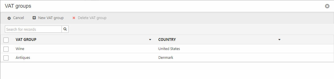 Contains vat groups as defined in Settings -> Ecom -> Internationalization -> Vat groups.